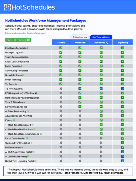 HotSchedules is a scheduling and team management platform for the restaurant industry. Facing mounting competition and lower-cost alternatives, its features had become spread across multiple packages, making it harder for operators to see the full value and for sales teams to explain the solution clearly.